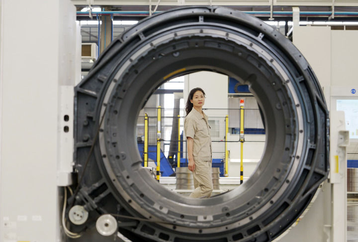 2025年5月24日,洛阳轴承集团技术中心高端轴承项目研发团队成员乔淑香查看自己参与设计的医疗CT机轴承。新华社记者 李嘉南 摄